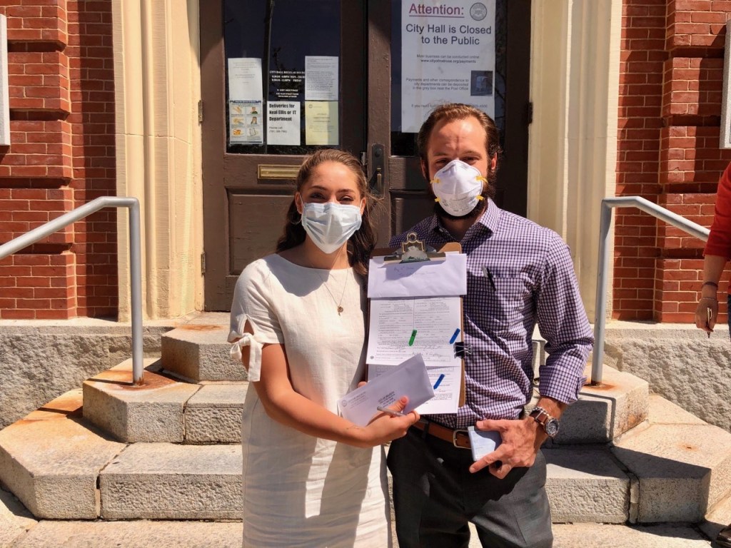 After quite the hunt Anna and Nick were finally ably to find a town hall that agreed to meet them outside and issue a marriage licence.